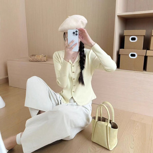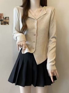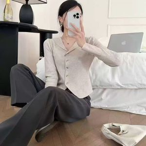 半开领长袖针织开衫女春秋大码胖mm高级感V领打底衫短款气质上衣