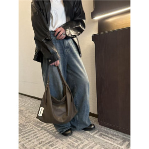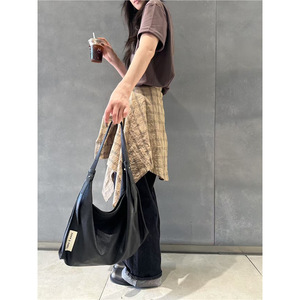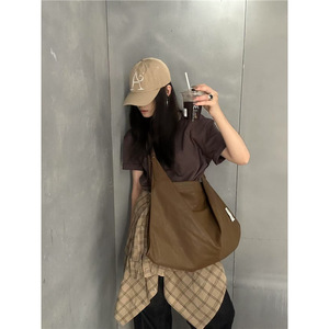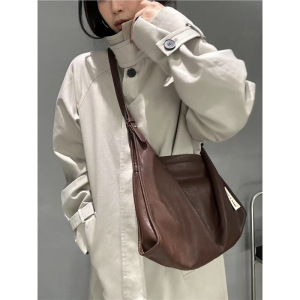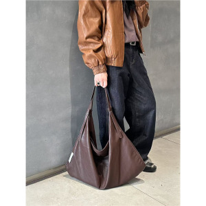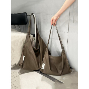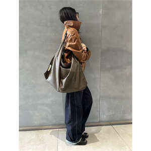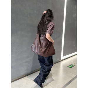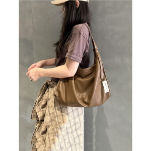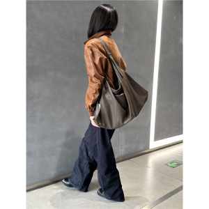 大容量慵懒松弛感托特包女百搭通勤包休闲软皮斜挎单肩包真皮大包
