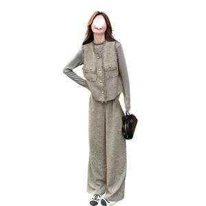 灰咖色马甲+长裤套装(高品质)