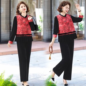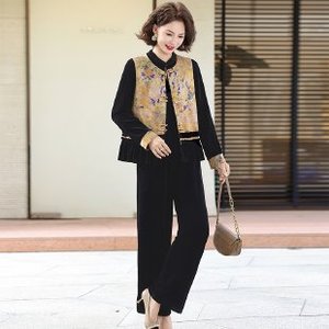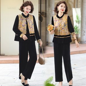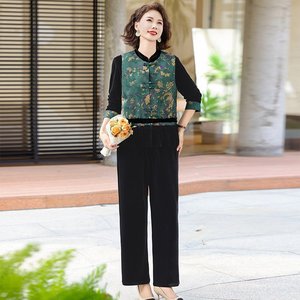 中国风妈妈秋装2025新款套装中老年人春秋季马甲唐装上衣三件套女