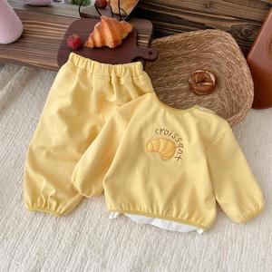 春季新款韩版洋气婴幼童卡通牛角包休闲宝宝长袖卫衣卫裤套装