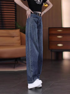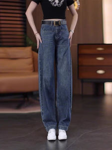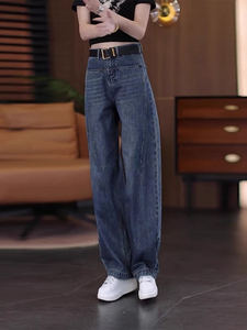 深色窄版高腰弯刀裤女2025春秋新款时尚宽松显瘦百搭阔腿牛仔裤