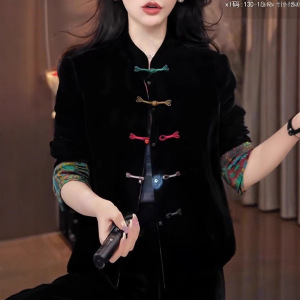 丝绒国风外套两面穿黑色新中式开衫春秋盘扣改良唐装上衣外搭女装