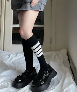 日系学生可爱网红jk潮ins四条杠小腿袜不对称春秋袜子女长筒袜