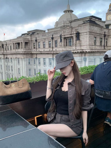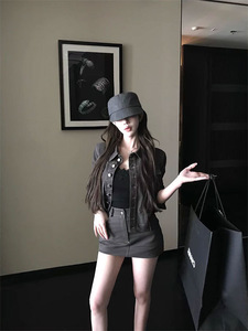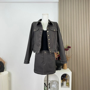 kubiliv【中古调性】复古时髦水洗灰正肩牛仔外套半身裙短裙套装