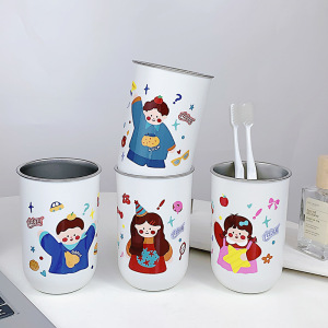 原创304不锈钢漱口杯水杯防摔牙刷杯牙缸学生刷牙杯洗漱杯印logo
