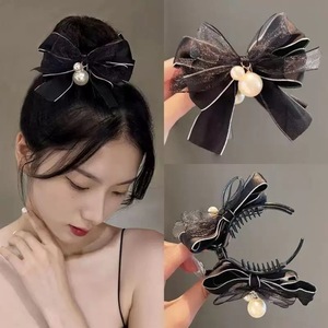 黑色蝴蝶结珍珠鲨鱼夹8cm