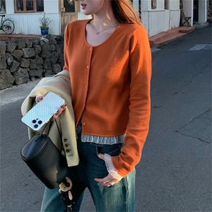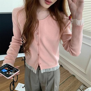 温柔风拼接设计感蕾丝花边针织开衫女秋冬新款小个子短款毛衣外套
