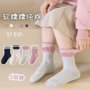 儿童袜子a类童袜精梳棉加厚秋冬女童拼色透气吸汗中筒袜批发