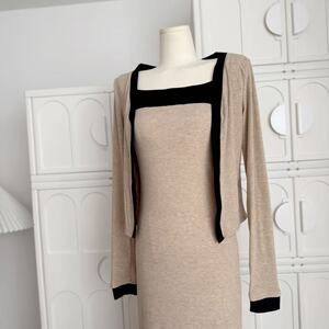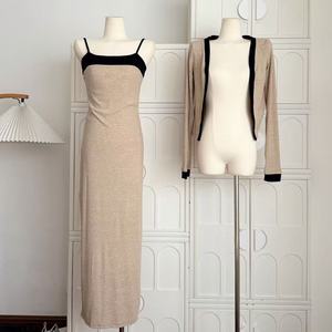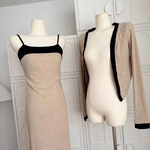秋季新款撞色吊带内搭修身显瘦短款长袖开衫两件套