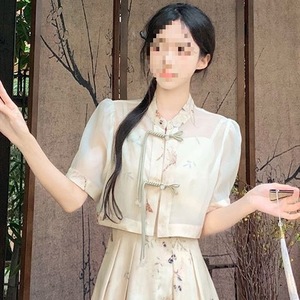 新中式套装夏季新款2025国风复古印花盘扣吊带裙碎花连衣裙两件套