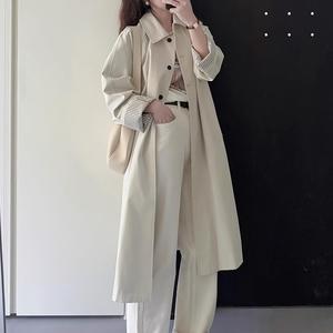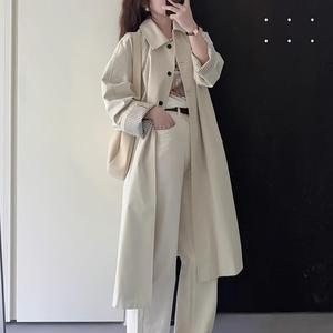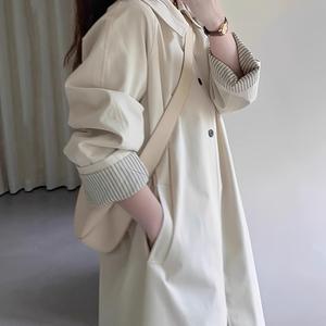 中长款风衣外套2025春秋季新款小个子宽松英伦大衣韩系米白色