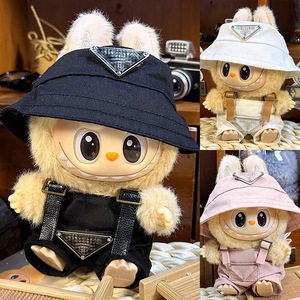 仅衣服适用马卡龙坐坐派对17厘米15拉布布Labubu娃衣渔夫帽背带裤