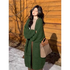 高级感开衫针织慵懒秋冬2024外套上衣女中宽松软风糯毛衣加厚长款