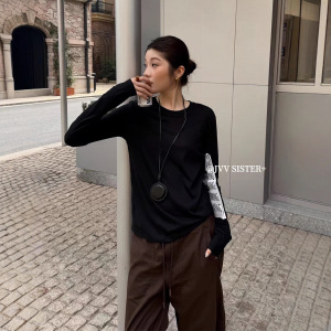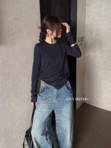 JVV广州十三行2025秋季新款圆领长袖上衣显瘦百搭休闲T恤女70955