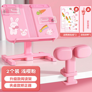 【升级款阅读套装】浅樱粉/H型底座阅读架+坐姿矫正器套装 /送指读棒+精美贴纸*2+指读棒
