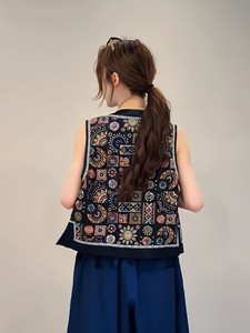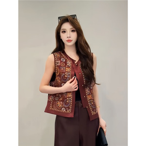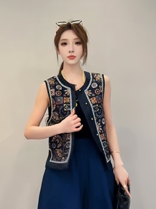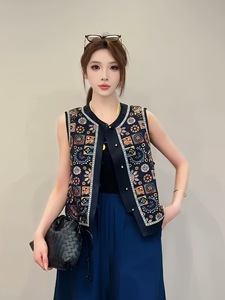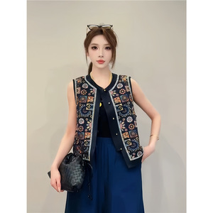 新中式国风刺绣亮片马甲女2025秋季新款复古圆领洋气减龄背心上衣