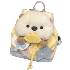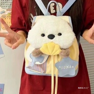 韩系ins软萌卡通水獭玩偶毛绒双肩包少女通勤背包学生上课书包潮