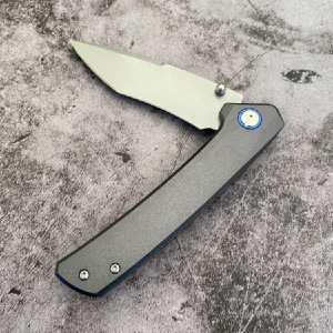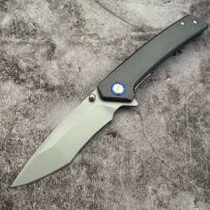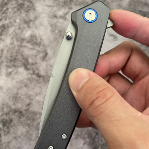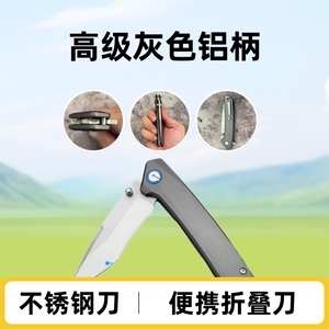 跨境专供折叠刀T6阳极氧化高级灰色铝柄+不锈钢喷砂刀刃EDC便携