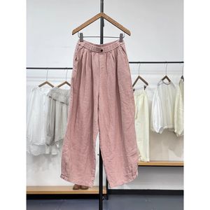 日系休闲简约风纯色棉麻休闲裤夏季新款松紧高腰宽松遮肉阔腿裤潮