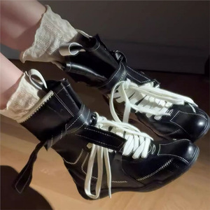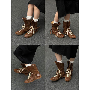 复古软皮拳击靴女2025年秋季新款英伦风马丁靴美拉德厚底中筒短靴