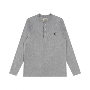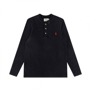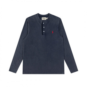 [高品质】拉夫RL马标水洗重工磨毛做旧亨利开胸长袖打底薄款卫衣