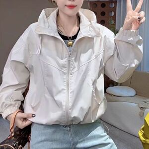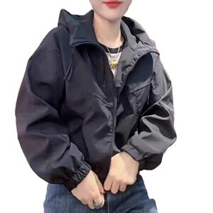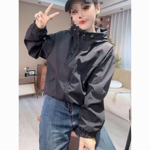 短款设计感冲锋衣外套女2025秋级韩版宽松别致小个子连帽夹克上衣
