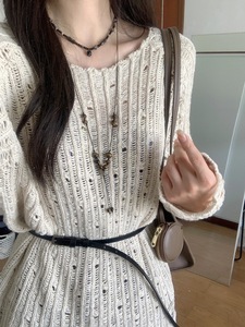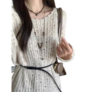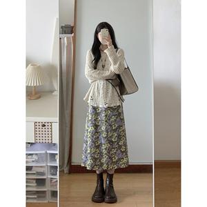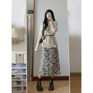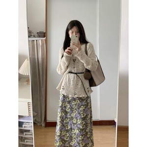 茶系穿搭一整套外搭罩衫碎花吊带连衣裙慵懒女春秋镂空针织衫上衣