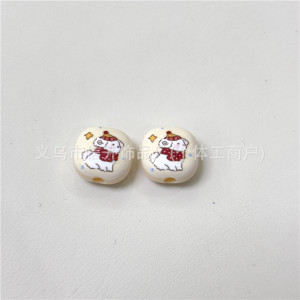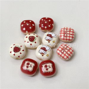 通孔水果印花小馒头串珠笔手工diy饰品手机链钥匙链包挂车挂材料