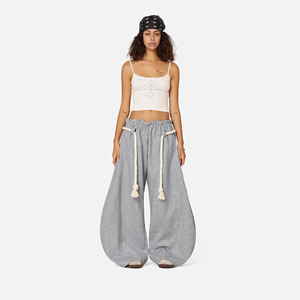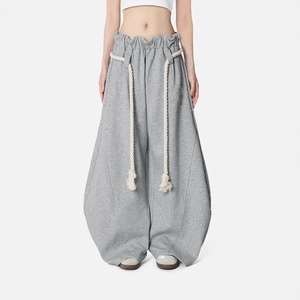 2025欧美跨境休闲女装街头风系带长裤宽松时尚收腰阔腿裤拖地裤女