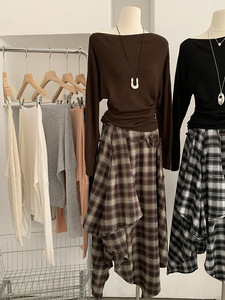 亿涵梦 一字领蝙蝠袖纯色修身显瘦针织衫2025早秋时尚韩系女