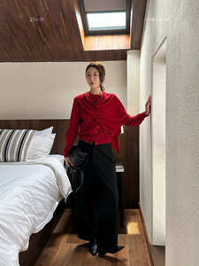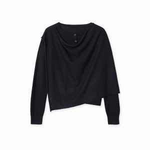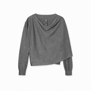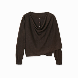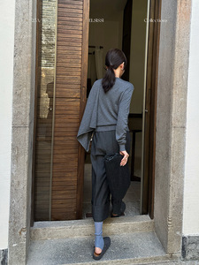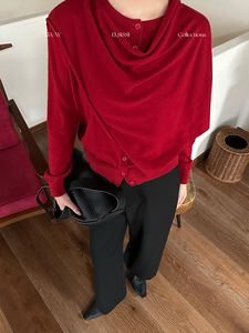 ELSISSI2025秋装圆领高级感围巾领针织衫薄设计感开衫长袖上衣女