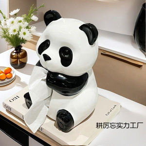 可爱熊猫纸巾盒客厅轻奢高颜值餐巾纸盒子搪胶抽纸盒创意茶几摆件