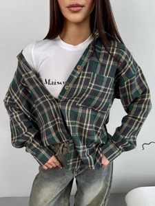 跨境复古格纹女式衬衫春秋季欧美百搭翻领宽松休闲长袖衬衣外套