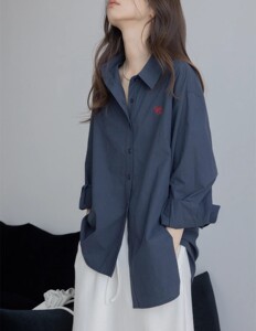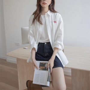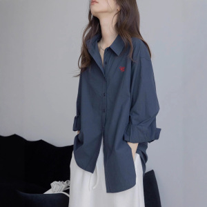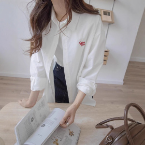 2025秋季全棉字母绣花衬衫女宽松休闲洗水翻领长袖上衣