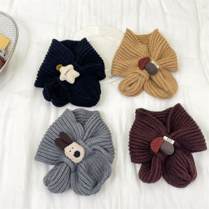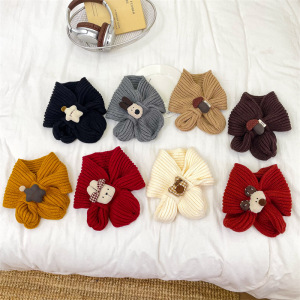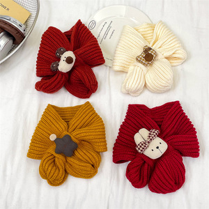 卡通百搭针织毛线可爱婴儿简约冬天儿童韩版围巾宝宝围脖交叉保暖