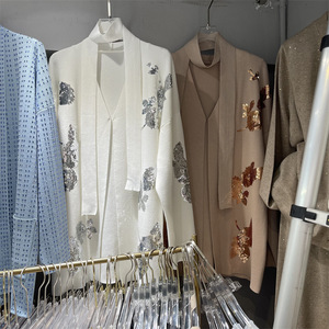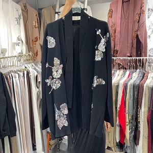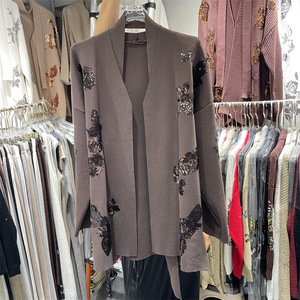 重工亮片立体绣花中长款长袖针织开衫女秋季新款时尚花朵毛衣外套