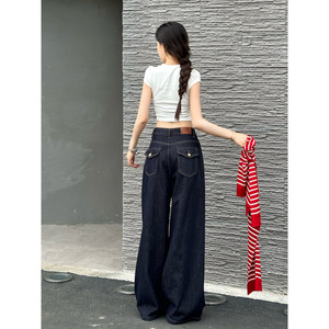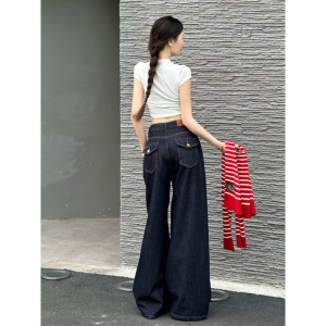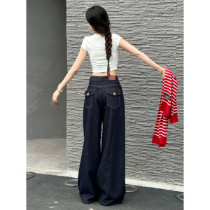 丹宁阔腿牛仔裤女2025秋季新款大码胖mm高腰宽松显瘦垂感直筒裤子