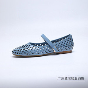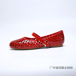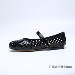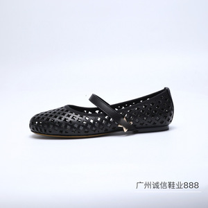 高版本*新款驴家镂空平底鞋透气圆头金属扣一字带玛丽珍时尚女鞋