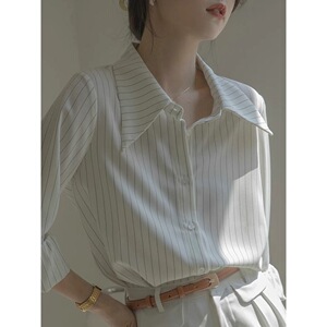 条纹衬衫女春秋新款正肩气质长袖通勤衬衣韩版白色高级感内搭上衣