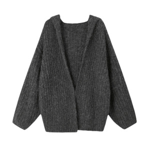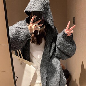 2025韩系秋冬季慵懒风中长款针织开衫软糯宽松连帽毛衣外套女上衣