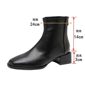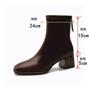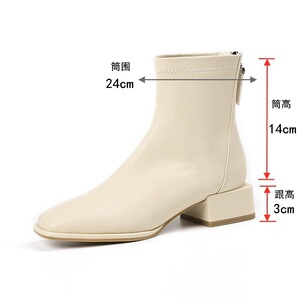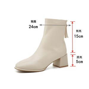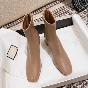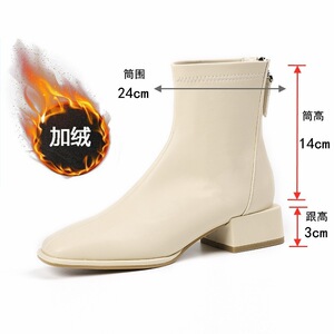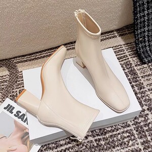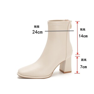 牛皮短靴2025秋冬款超火杏色韩版厚底方头粗跟短靴法式高跟瘦瘦靴