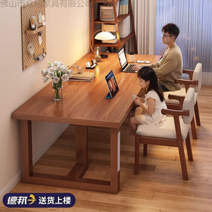 实木腿书桌家用卧室电脑桌双人客厅大长桌工作台学生学习长条写字