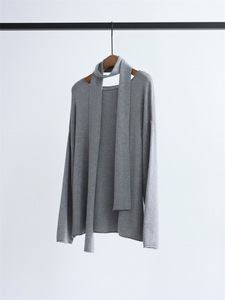 25秋冬配飘带圆领针织衫宽松上衣+抽绳直筒半裙羊毛混纺两件套装