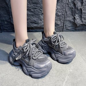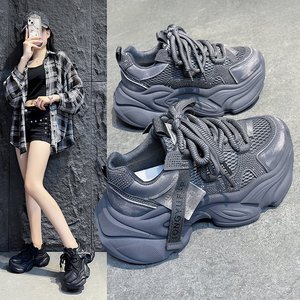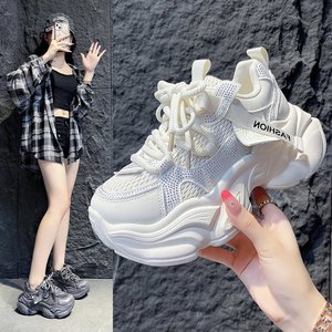 老爹鞋女松糕厚底增高女鞋2025新款夏季网面透气休闲运动小白鞋潮