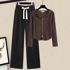 秋季慵懒风休闲显瘦百搭连帽拉链卫衣阔腿裤时尚套装女两件套套装