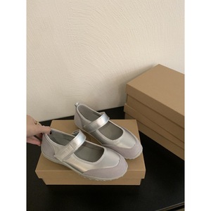 真皮浅口增高厚底芭蕾鞋女2025夏季新款复古法式运动银色玛丽珍鞋