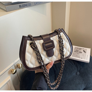 质感大容量休闲2025新款简约时尚绣线菱格链条女士单肩斜挎小方包