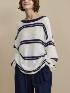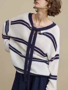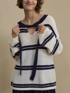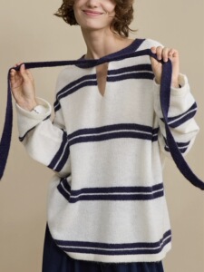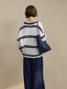 前后两穿绵羊毛马海毛撞色条纹飘带慵懒针织衫