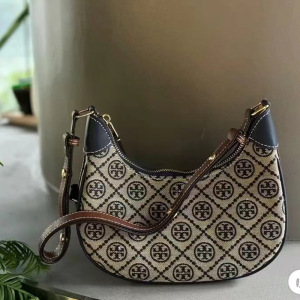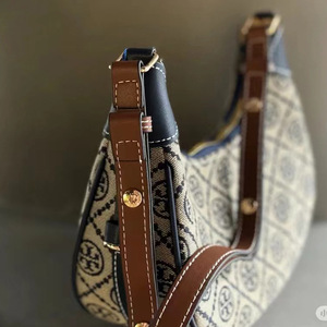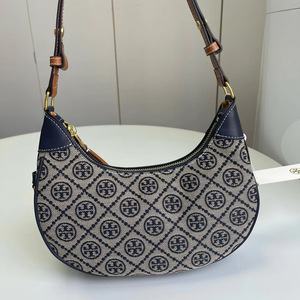 新款Tortyburch爆款牛角包单肩斜挎腋下包满印老花复古月牙女包潮